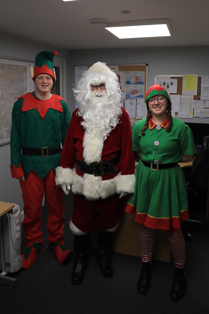 Santa with two of his elves pay a visit to EBG Helicopters