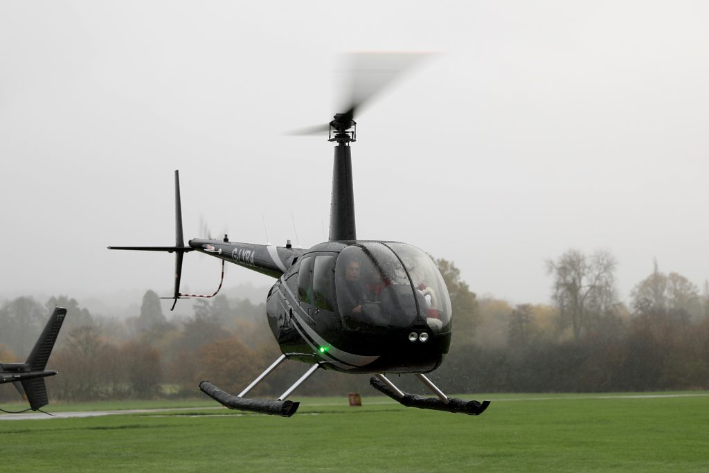 Santa and two of his elves visit EBG Helicopters. The jolly trio arrives at the bustling helicopter facility, their eyes wide with wonder. Santa, with his iconic red suit and white beard, greets the EBG team with a hearty laugh. The elves, dressed in their festive green attire, eagerly explore the impressive fleet of helicopters. They marvel at the sleek designs and powerful engines, imagining the thrilling flights they could take. The EBG staff shares stories of their helicopter adventures, and the elves listen intently, their imaginations soaring as high as the helicopters themselves. After the mist cleared, they all got taken to the Priory School in Reigate, piloted by Captain Ken where all the children were eagerly waiting to meet them.